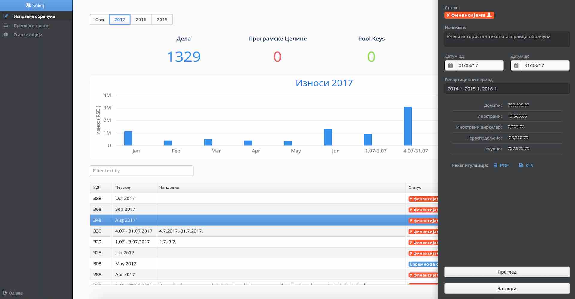 Information system for Serbian Music Authors Organizations which protects rights of composers, songwriters, arrangers and other right holders in respect of musical works. The solution fully supports the International Confederation of Societies of Composers and Authors (CISAC) standards of data exchange with the other societies (CRD), publishers and sub publishers (CWR), world databases for music works (WID) , authors (IPI) Agreements (AGR), Online Services (Youtube, Deezer..) etc.